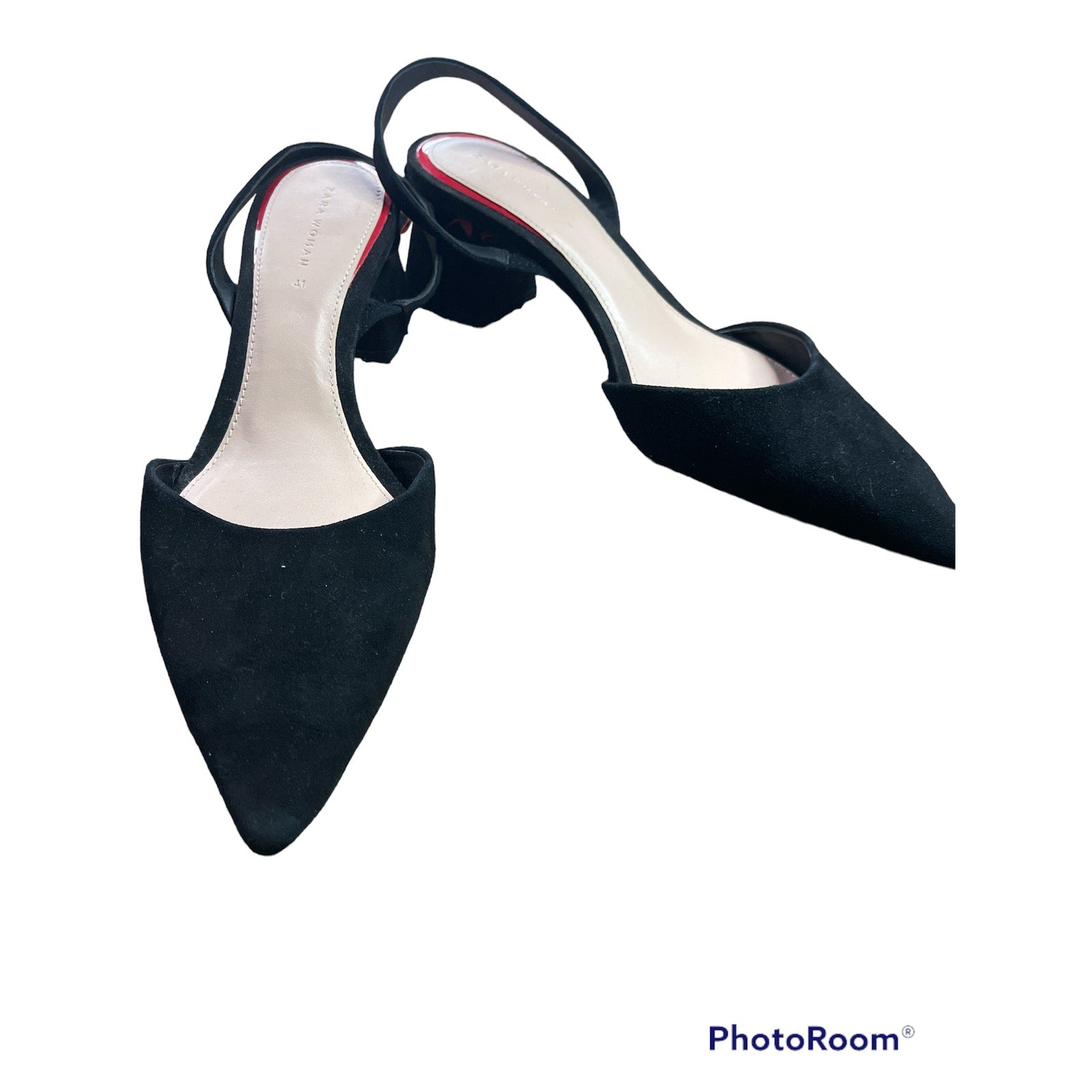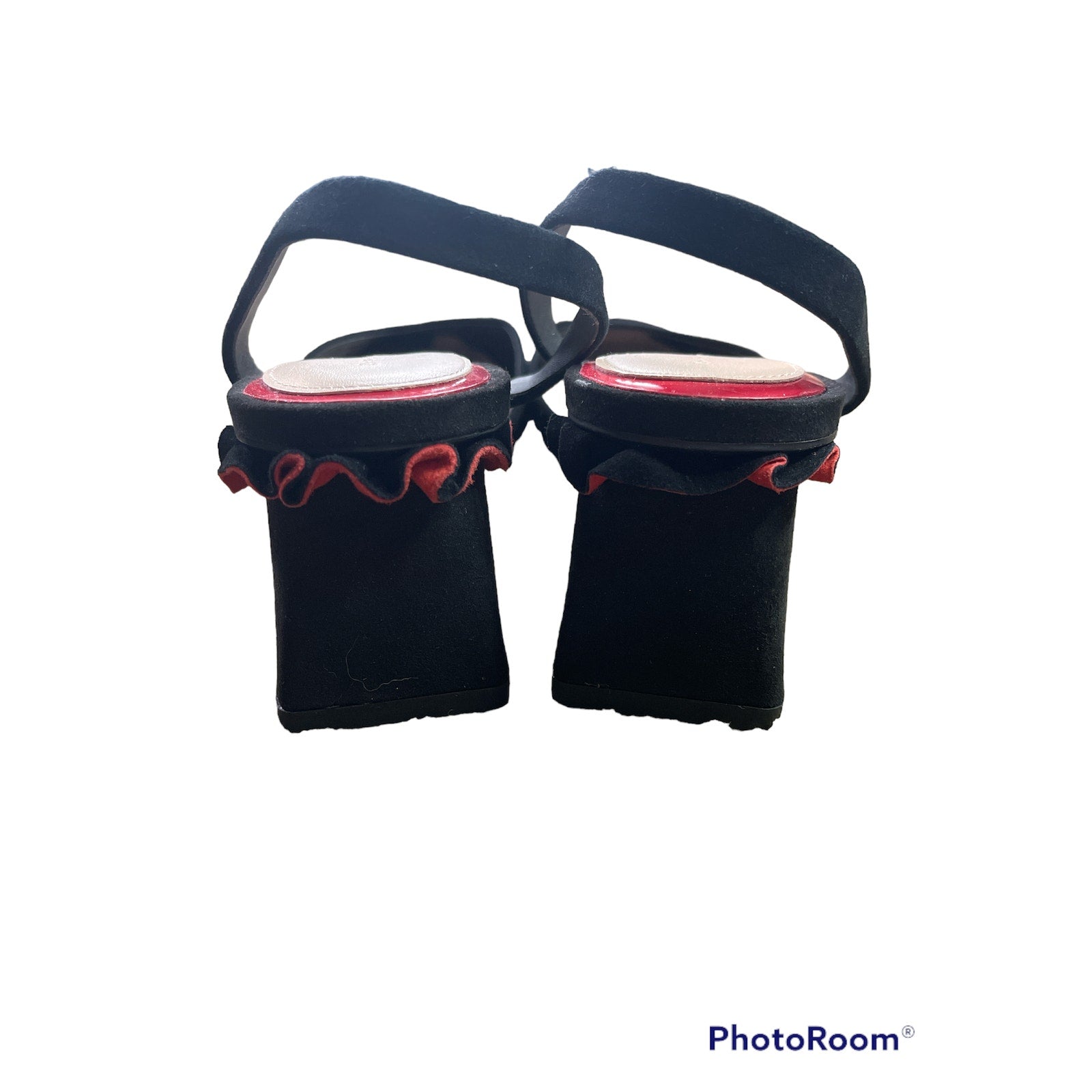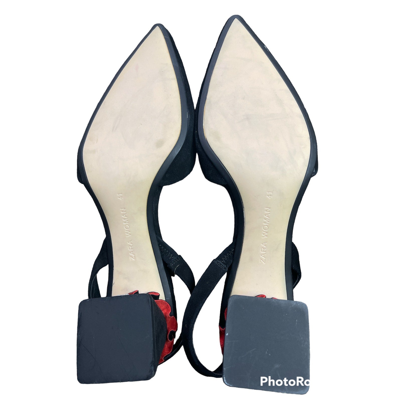 Zara D'orsay Black Red Ruffle Suede Pointed Toe Block Slingback Heel Size 41