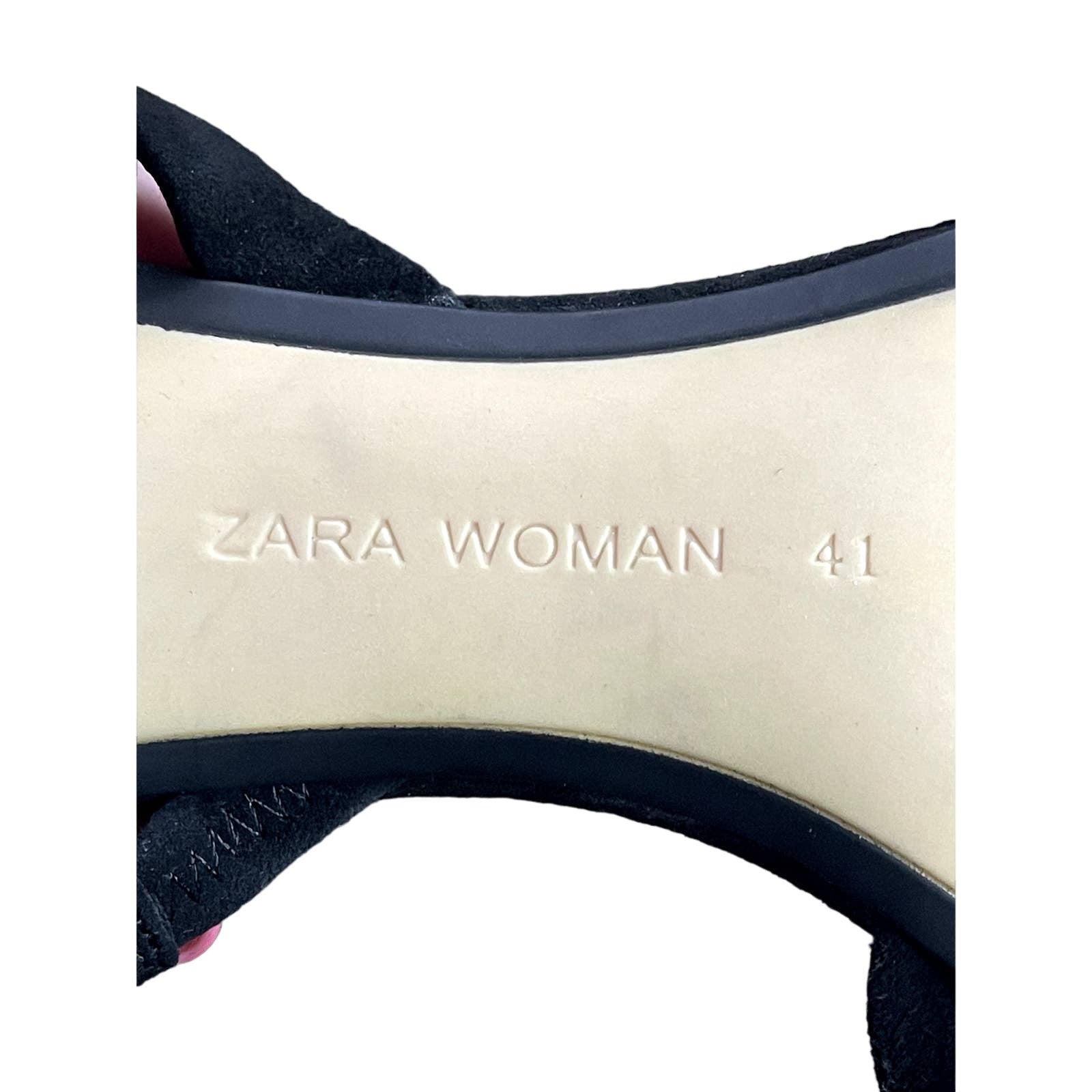Step out in style with these stunning Zara D'orsay heels. The sleek black suede and pointed toe add a touch of sophistication, while the bold red ruffle detail adds a pop of color and fun. The comfortable block heel makes them perfect for all-day wear, and the size 41 ensures a perfect fit. Elevate any outfit and turn heads with these must-have heels!