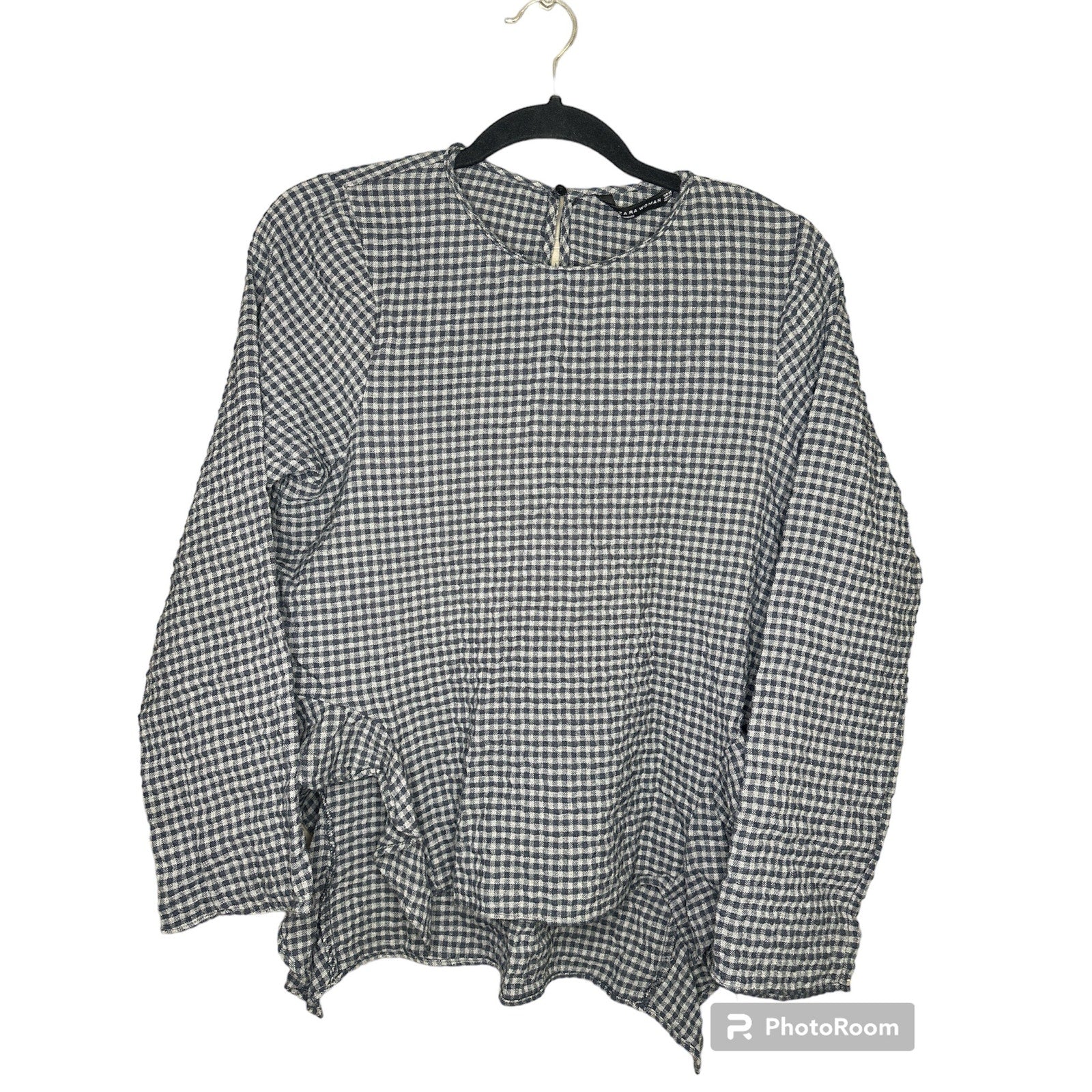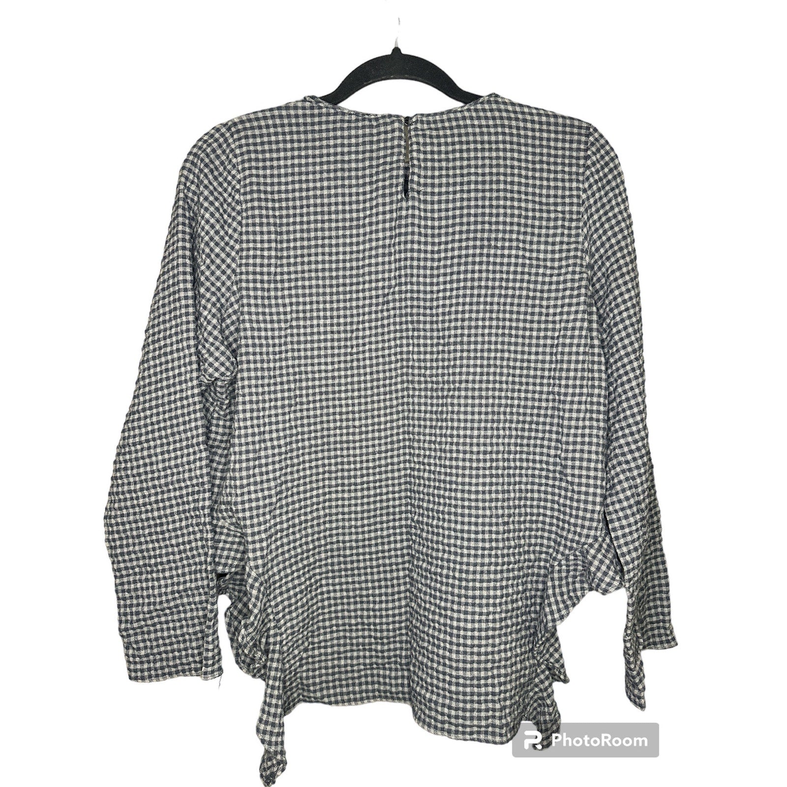 Zara Gingham Long Sleeve Grey Black Ruffle Hi Lo Blouse Size XS